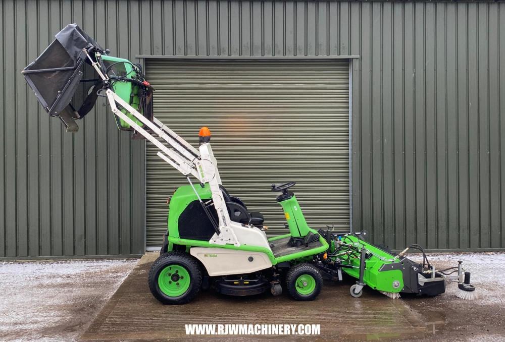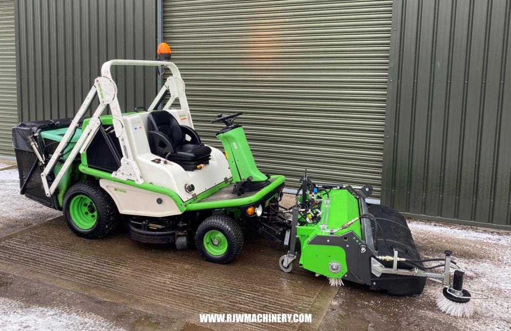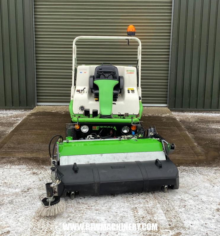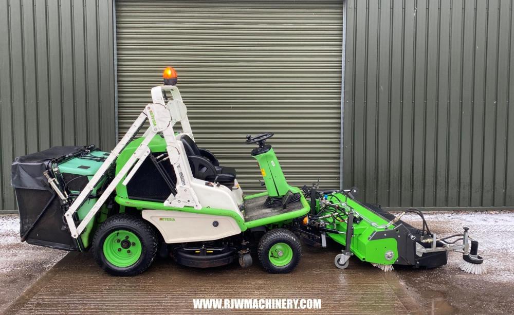Etesia H124D, 1692hrs, Diesel engine, hydrostatic drive transmission, PAS, hydraulic lifting deck, 124cm cutting width, Hi-tip hydraulic tipping collector, Kersten hydraulic front mounted brush c/w collector, Etesia front mounted scarifying attachment, cab. Trade Sale machine, sold as seen. full working order. £4,000 + VAT