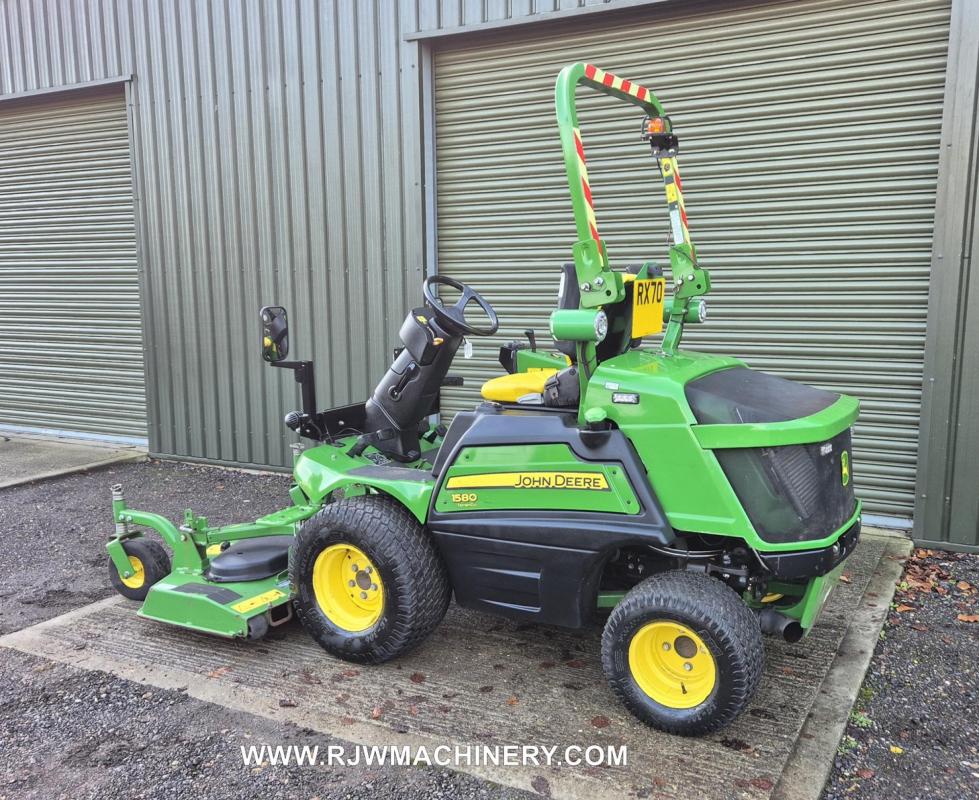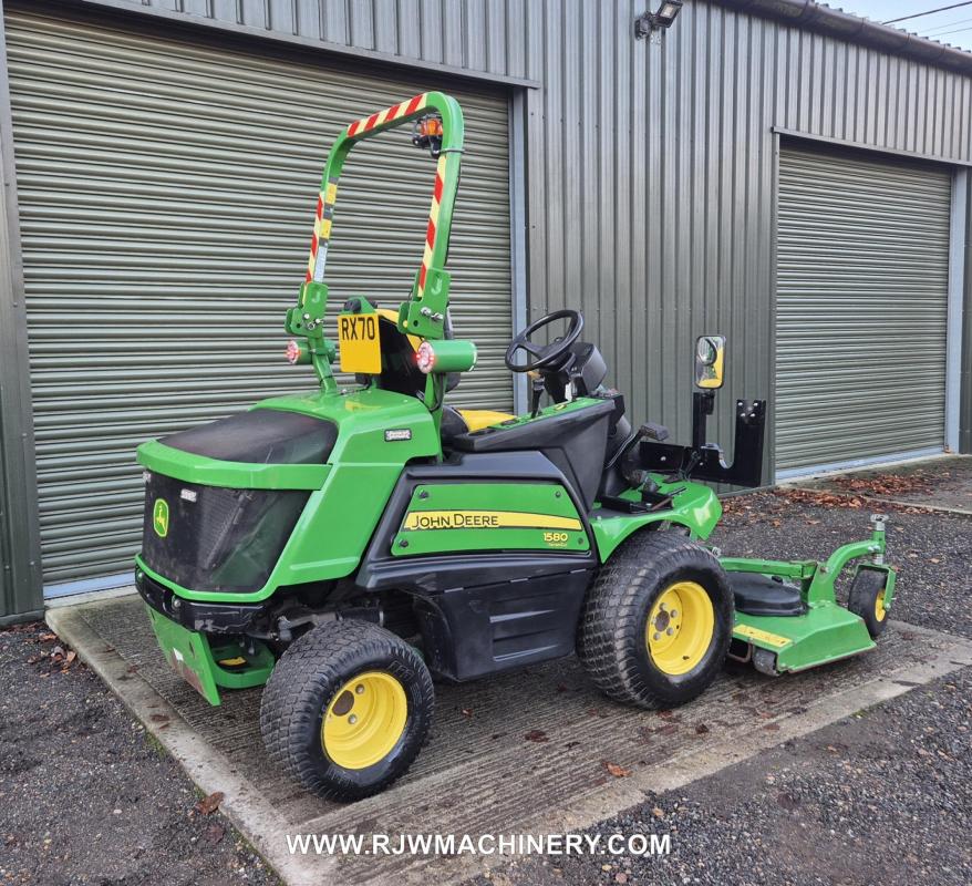 John Deere 1580 out front mower, Yr 2020 - 1182 Hrs, 38hp 3 cylinder diesel engine, hydrostatic power steering, HST, 4 wheel drive, ROPS, LED road lighting kit, 62" rear discharge deck, Road registered. £16,750 + VAT Choice of 4 available Business Finance available, T & C's apply