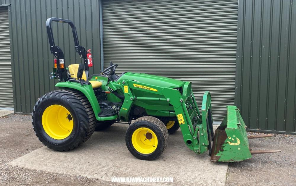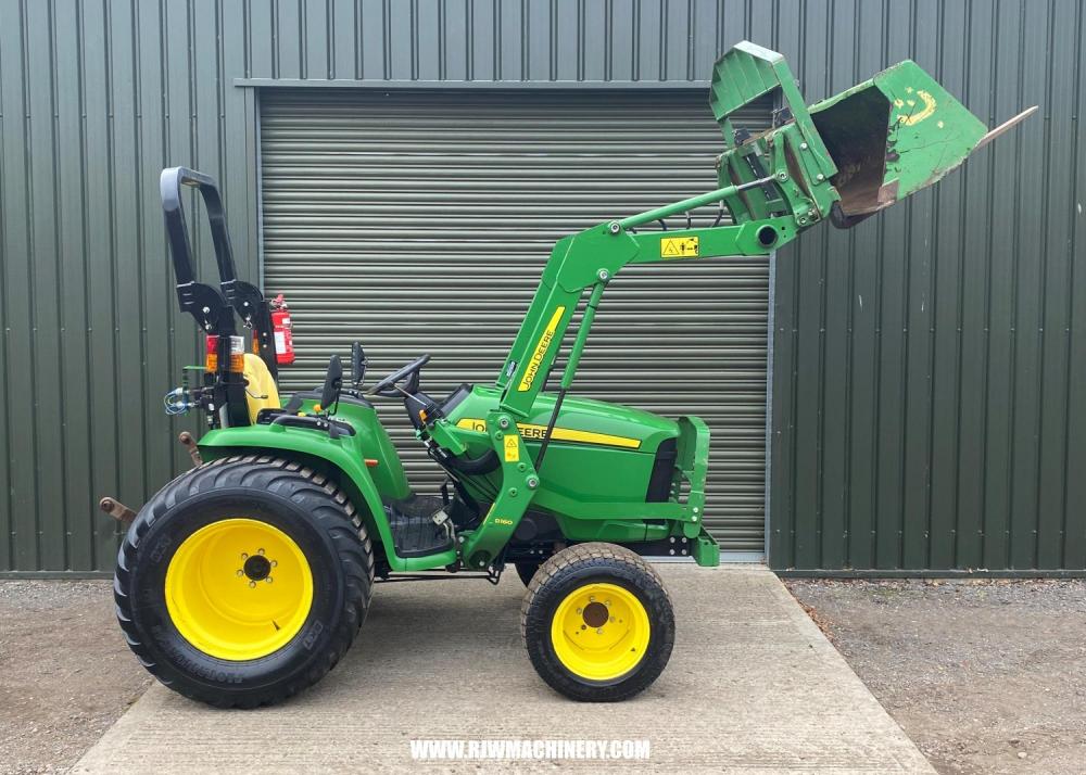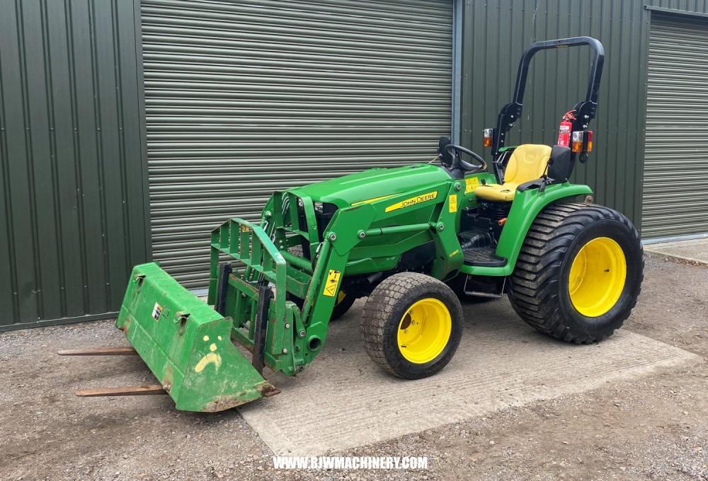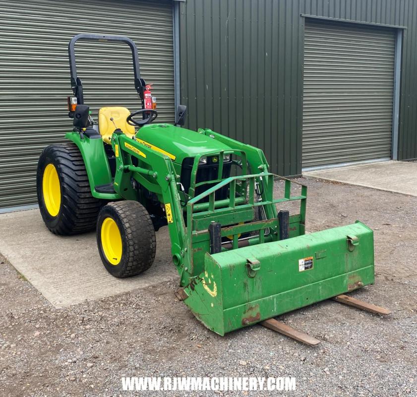 John Deere 3036E compact tractor, year 2014 ~ 2141hrs, 36.6hp Yanmar 3 cylinder diesel engine, 2 range hydrostatic drive transmission, PAS, ROPS, CAT 1 rear linkage, 615kg rear lift capacity, 540rpm rear PTO, 2 x double acting hydraulic spools, floatation tyres, John Deere front loader c/w bucket and pallet forks, road registered. (awaiting prep) £13,750 + VAT