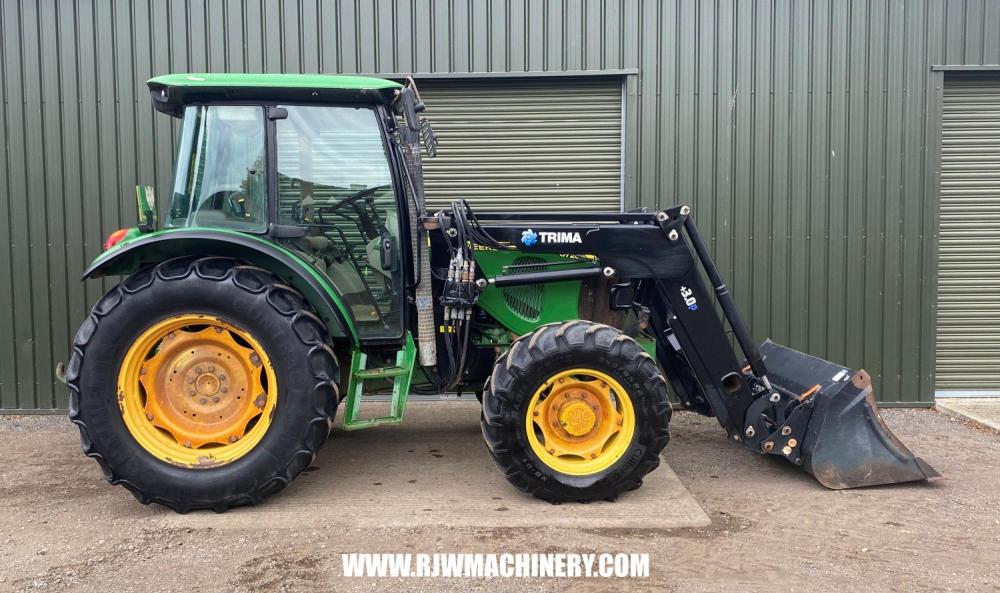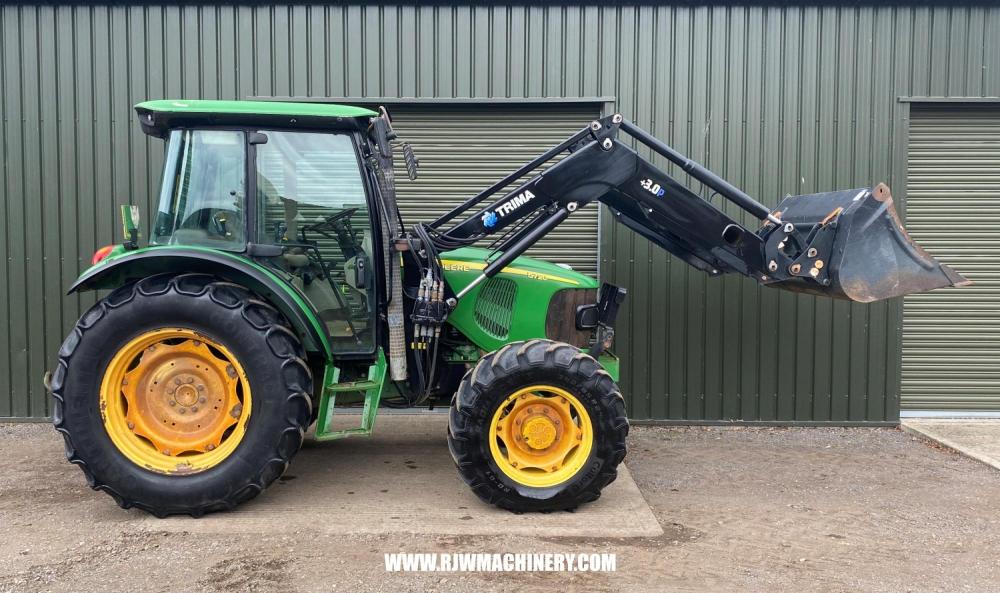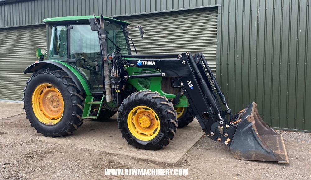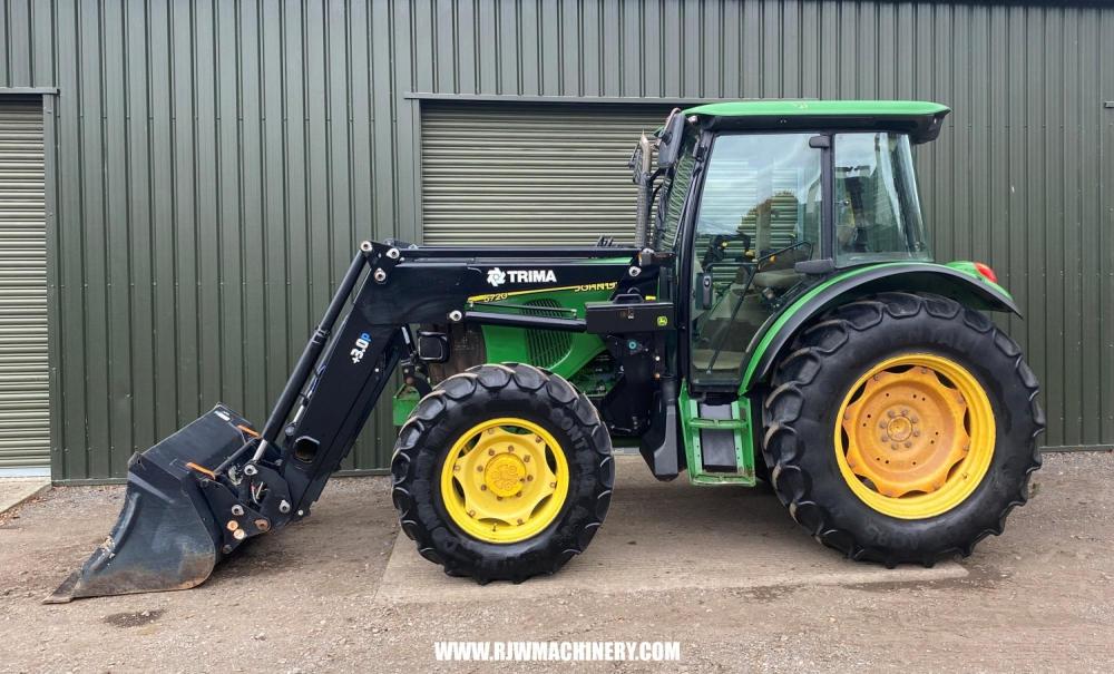 John Deere 5720 tractor, year 2008 ~ 6217hrs, 80hp 4 cylinder turbocharged John Deere diesel engine, Powrquad transmission, 16 forward and 16 reverse gears, PAS, selectable 2/4 wheel drive, air con, CAT 2 rear linkage, rear lift capacity 3773kg, 540E/540/1000 rpm rear PTO, rear hydraulic spools, auto pick up hitch, 420/85 R34 rear tyres and 340/85 R24 fronts, TRIMA +3.0P front loader c/w bucket, road registered. £20,000 + VAT