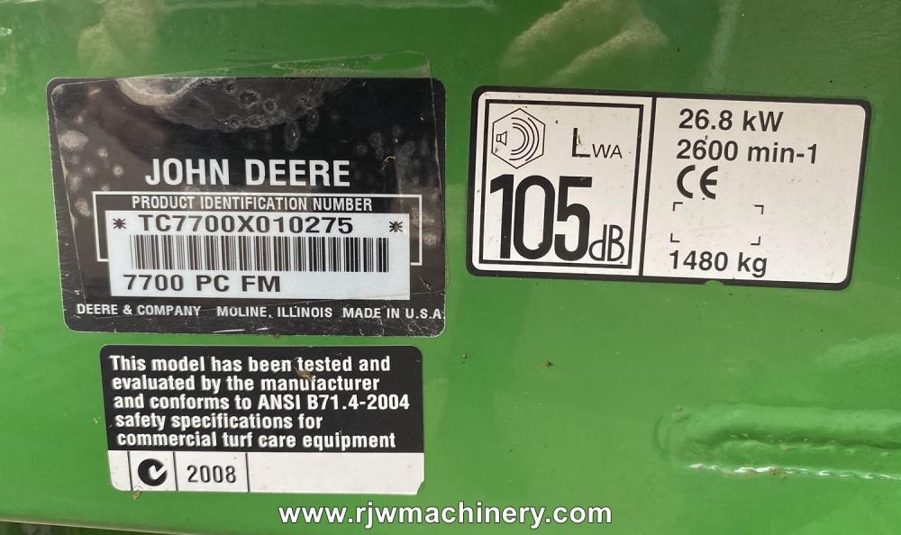 John Deere 7700 precision cut fairway mower, year 2008 - 2060 hrs, Yanmar diesel engine, HST, PAS, ROPS, 2wd, In working order **TRADE SALE** £3,750 + VAT