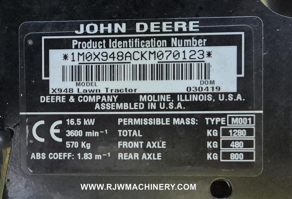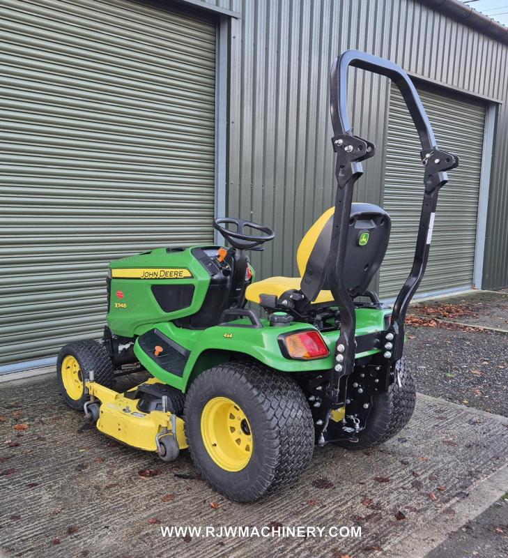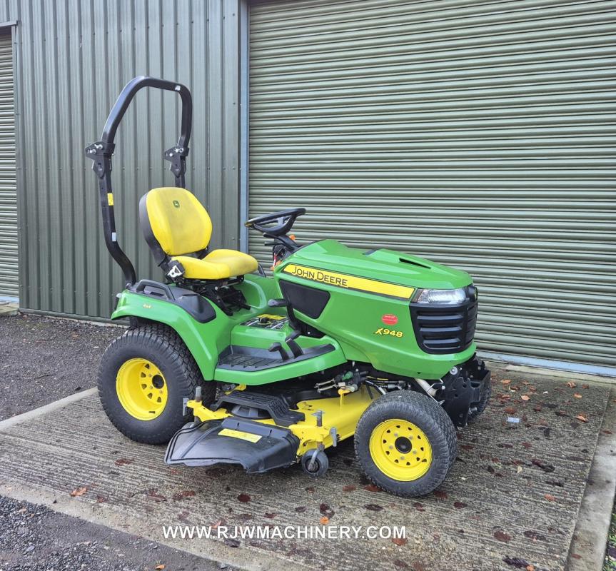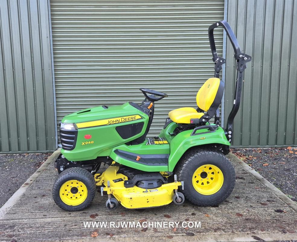 John Deere X948 ride on mower, Yr 2019 - 900 Hrs, 25hp 3 cylinder diesel engine, 4 wheel drive, PAS, hydrostatic transmission, ROPS, 54" drive over side discharge deck. £8,900 + VAT