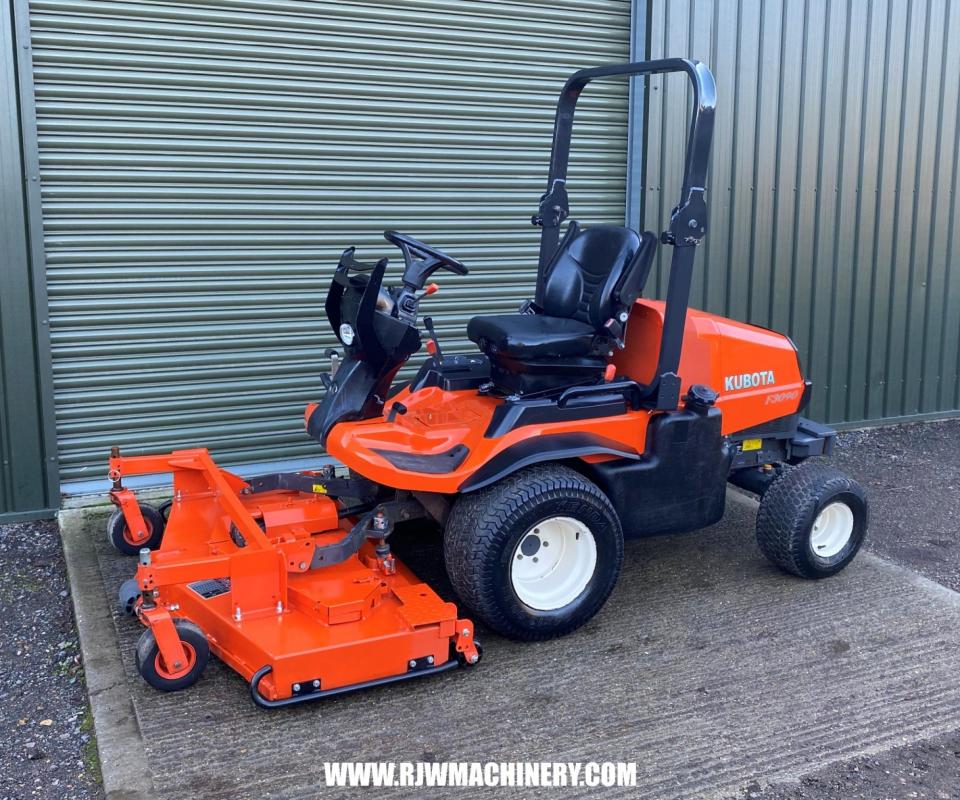 Kubota F3090 out front mower, year 2013 ~ 630hrs, 30hp, 3 cylinder Kubota diesel engine, 2 range hydrostatic drive transmission, PAS, ROPS, auto assist 4 wheel drive, fitted with 60" rear discharge cutter deck, Business finance available. £11,750 + VAT. Every F Series power unit gets a full service: filters, oils, coolant changed, radiator clean, and fuel tank removed & flushed. Steering checked, seals, bushes, tyres, bonnet and platform renewed as needed. Built to last, ready to go, Deck Stripped, inspected, rebuilt. Bearings, seals, belt and blades changed if needed, gearbox oil changed – all serviced, Greased and work-ready, Includes free UK mainland delivery, 3-month warranty (see RJW website), full on-site installation if required, and operator’s manual supplied.