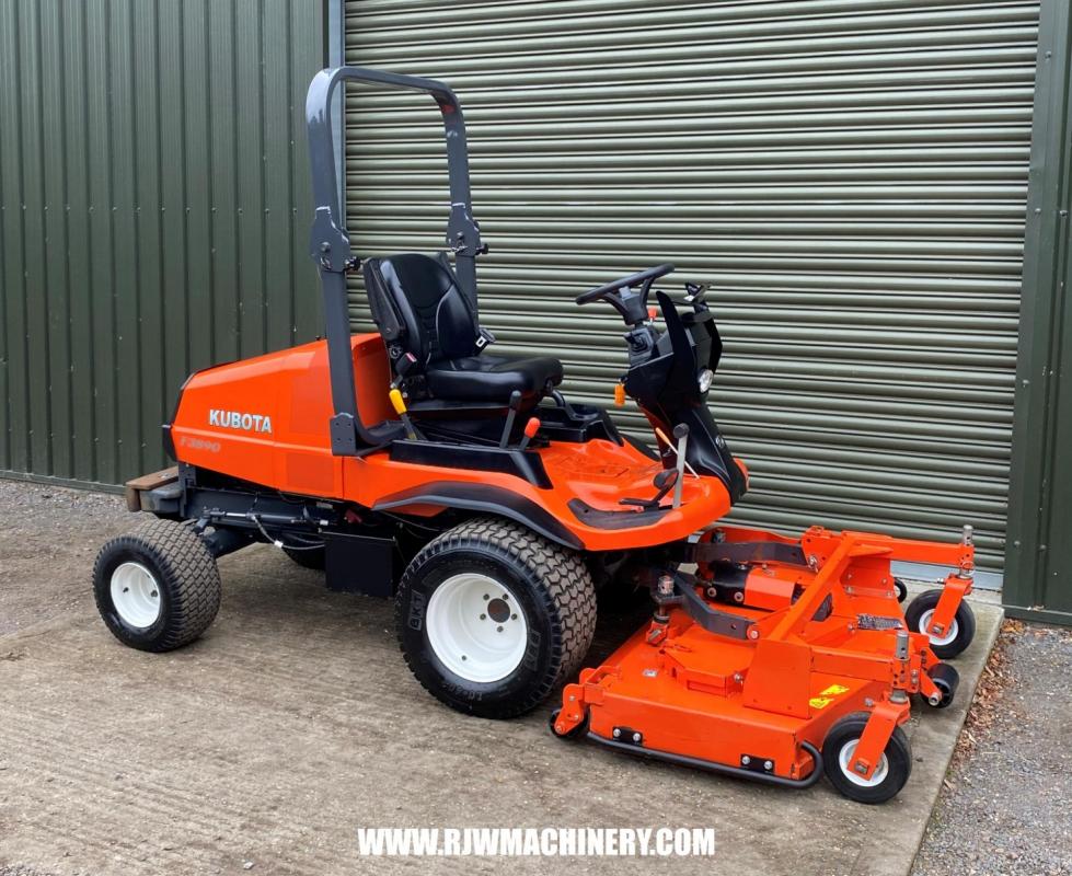 Kubota F3890 out front mower, year 2015 ~ 1160hrs, 38hp, 4 cylinder Kubota diesel engine, 2 range hydrostatic drive transmission, PAS, ROPS, auto assist 4 wheel drive, fitted with 60" rear discharge cutter deck, Business finance available. £13,500 + VAT. Every F Series power unit gets a full service: filters, oils, coolant changed, radiator clean, and fuel tank removed & flushed. Steering checked, seals, bushes, tyres, bonnet and platform renewed as needed. Built to last, ready to go, Deck Stripped, inspected, rebuilt. Bearings, seals, belt and blades changed if needed, gearbox oil changed – all serviced, Greased and work-ready, Includes free UK mainland delivery, 3-month warranty (see RJW website), full on-site installation if required, and operator’s manual supplied.