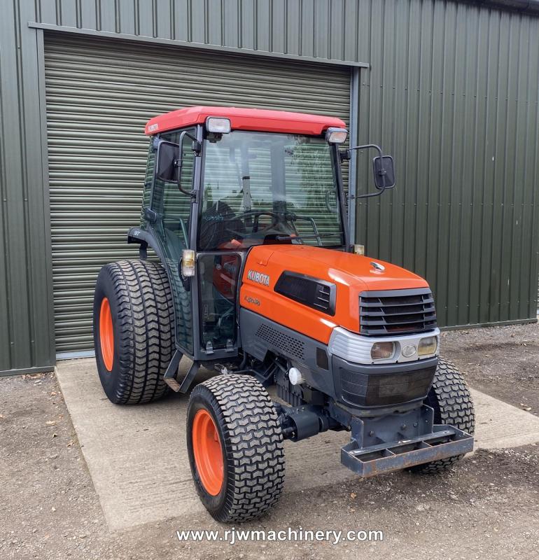 Kubota L5030 tractor, 2165 hrs, 50hp 4 cylinder Kubota diesel engine, GS transmission with 12 forward and 8 reverse gears, selectable 2/4 wheel drive, PAS, full cab with air con, 540 rpm rear PTO, CAT II/I rear 3 point linkage, 1351kg rear linkage lift capacity, rear hydraulic spool valves, turf tyres. £10,750 + VAT