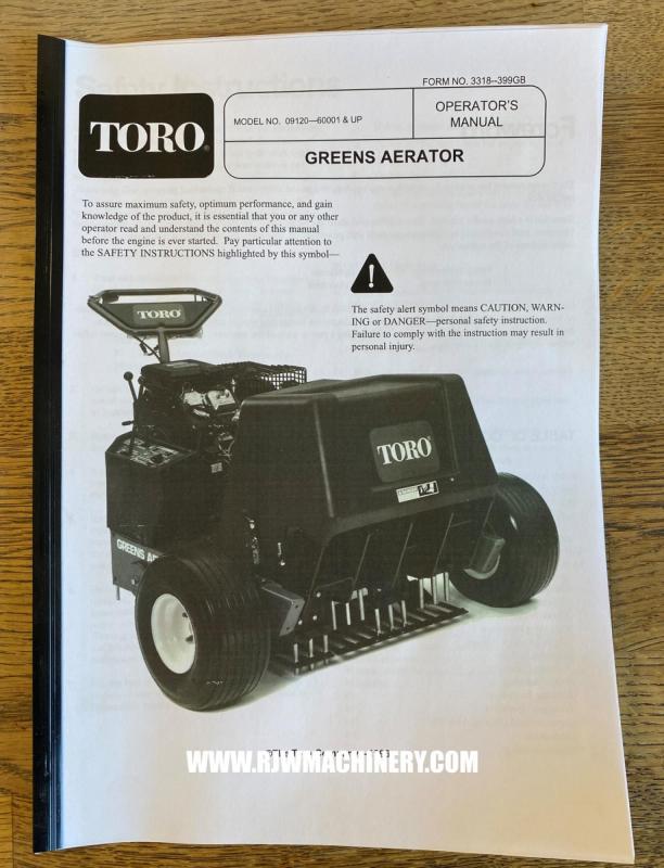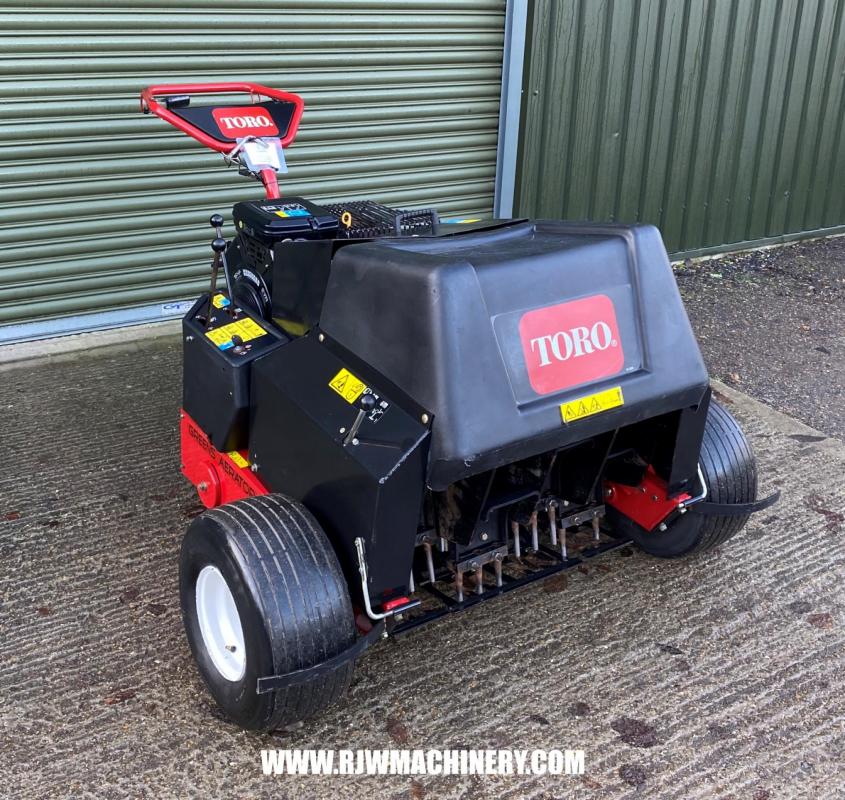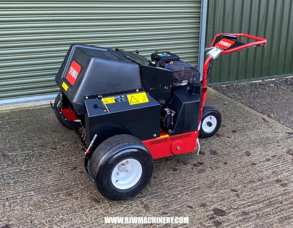 Toro Greens Aerator, Briggs & Stratton 16hp V-Twin Vanguard petrol engine, electric start, 2 forward speeds and 1 reverse, hydraulic lift, travel lock, four tine holders which will take core or solid tines, 27" working width, operators manual. £4,000 + VAT