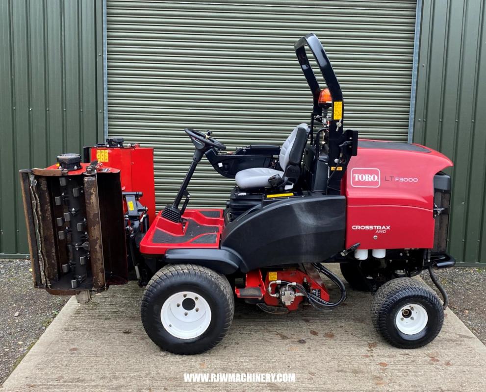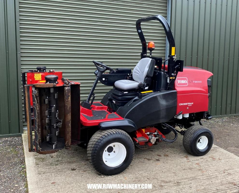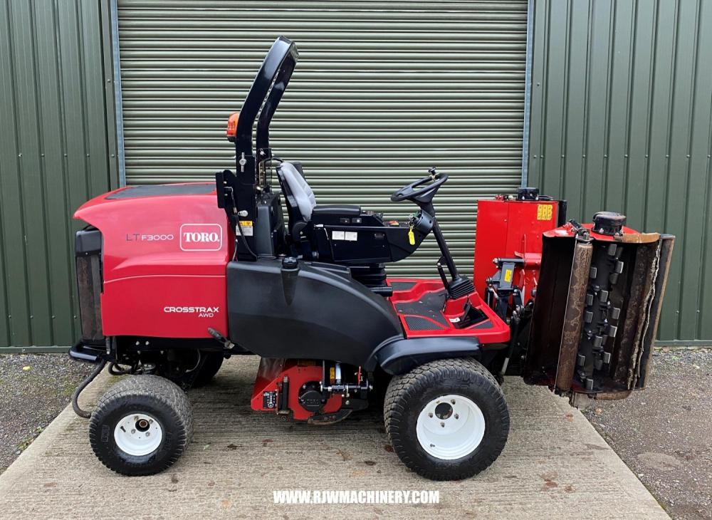 Toro LT F3000 triple flail mower, year 2023 ~ 1900hrs, 43.4hp Yanmar 3TNV86T liquid-cooled turbo charged diesel engine (stage V compliant) c/w manual diesel particulate filter regen override (controlled through InfoCenter), 2 stage air cleaner, electronic engine throttle control, electric park brake, PAS, electric independent cutter lift/lower, cutter on/off/reverse switch, adjustable steering column, ROPS, cutting width 2120mm, HOC 20mm - 75mm, cutting up to 5.4 acres per hour, full road lighting kit and beacon, road registered. new flails and fully serviced. £19,500 + VAT