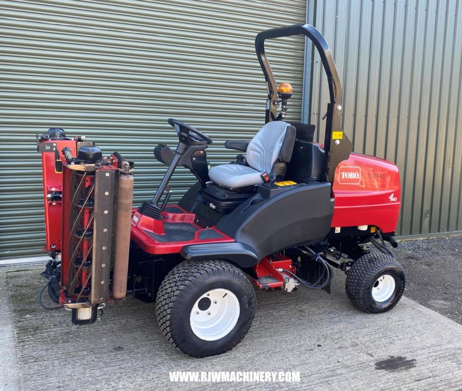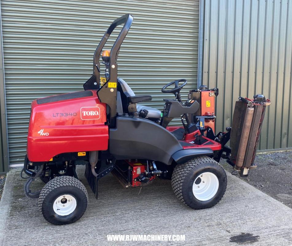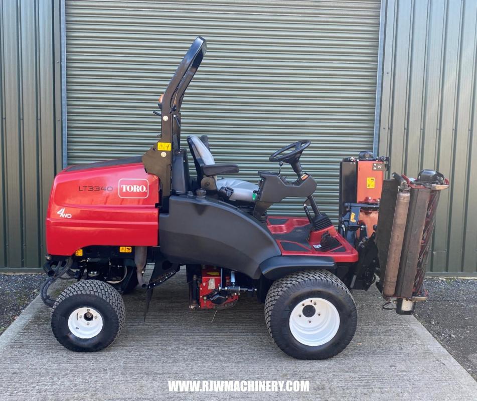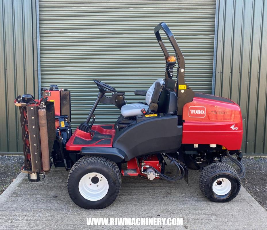 Toro LT3340 Triple cylinder mower, year 2015 - 1363 hrs, 35hp, 4 cylinder Kubota diesel engine, Hydrostatic transmission, PAS, ROPS, 4 wheel drive on demand, 2.12m working width, indepenent head lift, 8" 8 bladed MKIII cutting units, road registered, will come Fully serviced & blades sharpened. ideal for cricket or sports grounds. £8,750 + VAT