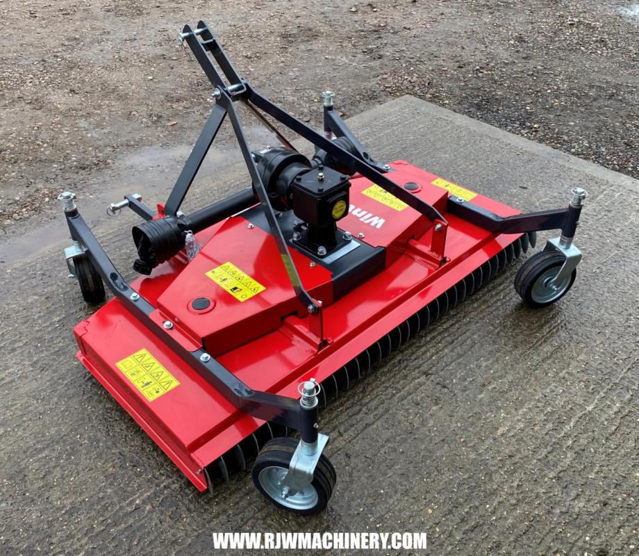 Wintons W-FM120 finishing mower (New), 1.2m cutting width, 3 blade spindles, CAT 1 linkage mounted, 540rpm PTO driven, cutting height from 35mm - 80mm, min 16hp tractor required, weight 178kg. £1,100 + VAT